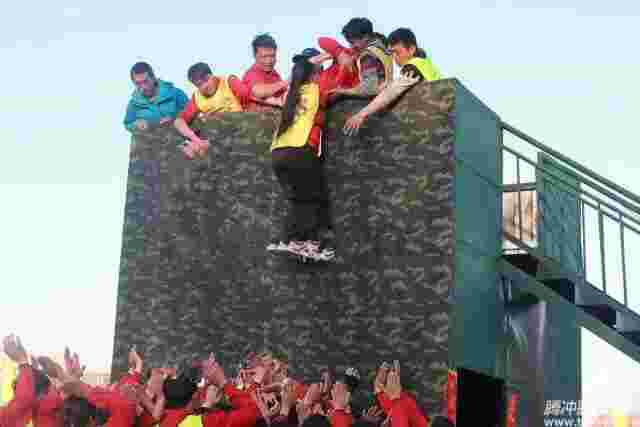 7、在下面搭人梯的隊(duì)員要輪換進(jìn)行,以防時(shí)間過長支持不住,造成不必要的損傷;所有未攀爬隊(duì)員在項(xiàng)目進(jìn)行當(dāng)中都要站在后面做好“抱石保護(hù)”動作,以保證攀爬隊(duì)員的安全;所有隊(duì)員在項(xiàng)目進(jìn)行當(dāng)中,如出現(xiàn)身體不適要提前聲明并堅(jiān)持?jǐn)?shù)秒,培訓(xùn)師會立即停止項(xiàng)目進(jìn)行調(diào)配。